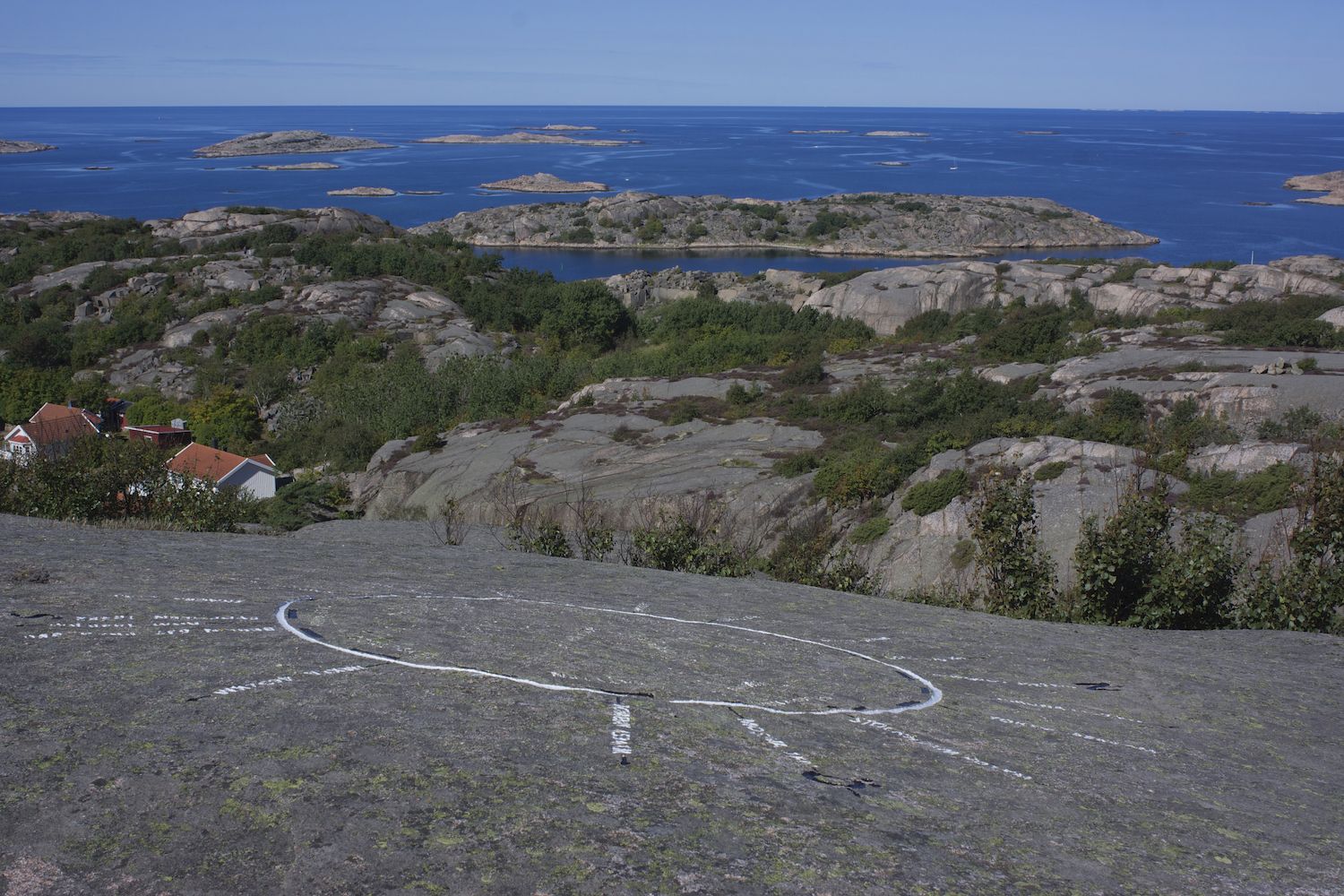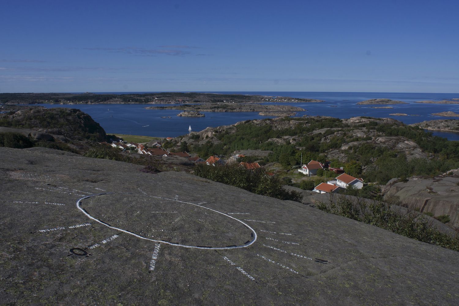 Bearbetat direkt i berget, i mitten av kompassrosen finns en stjärnkarta.
