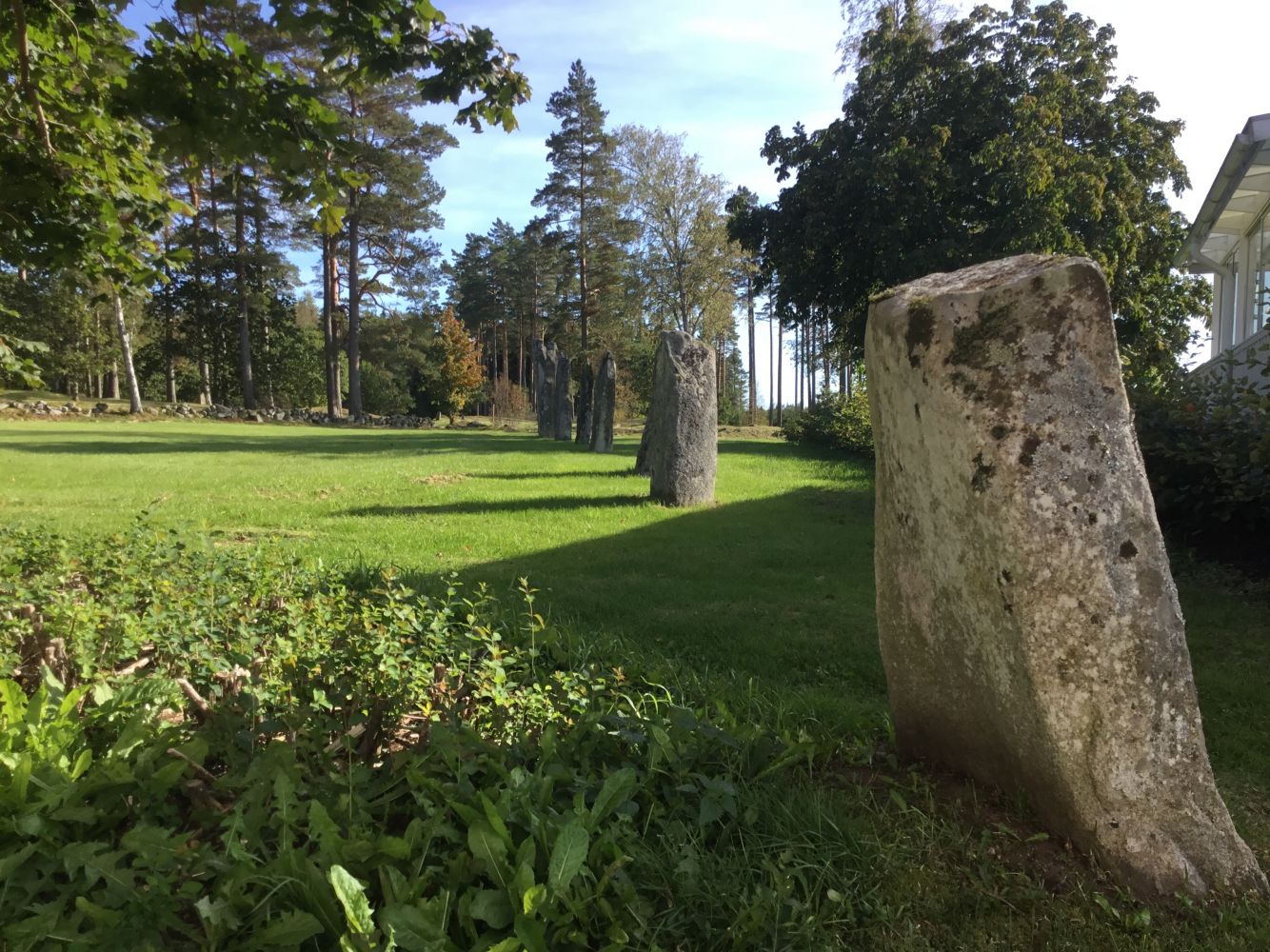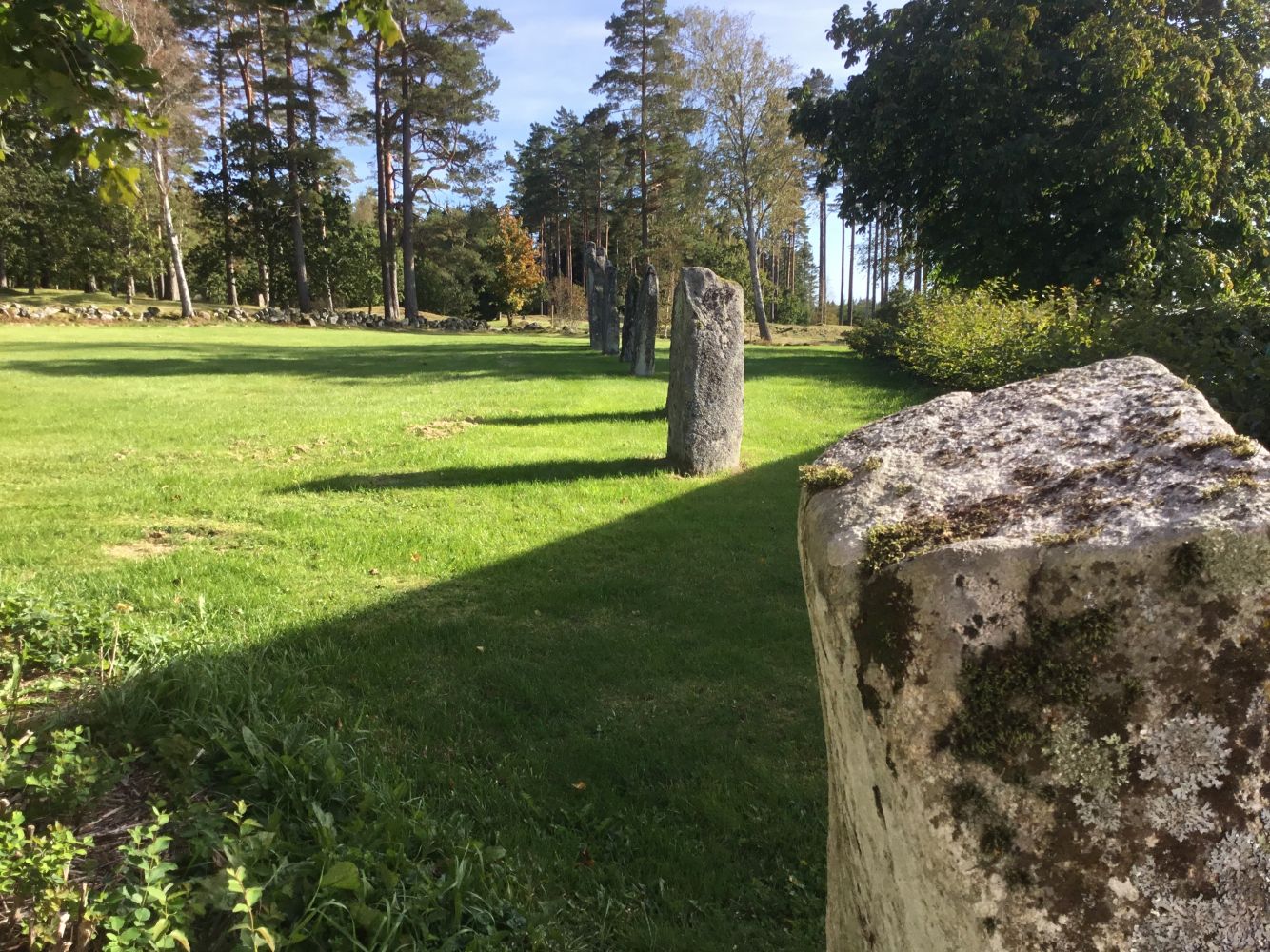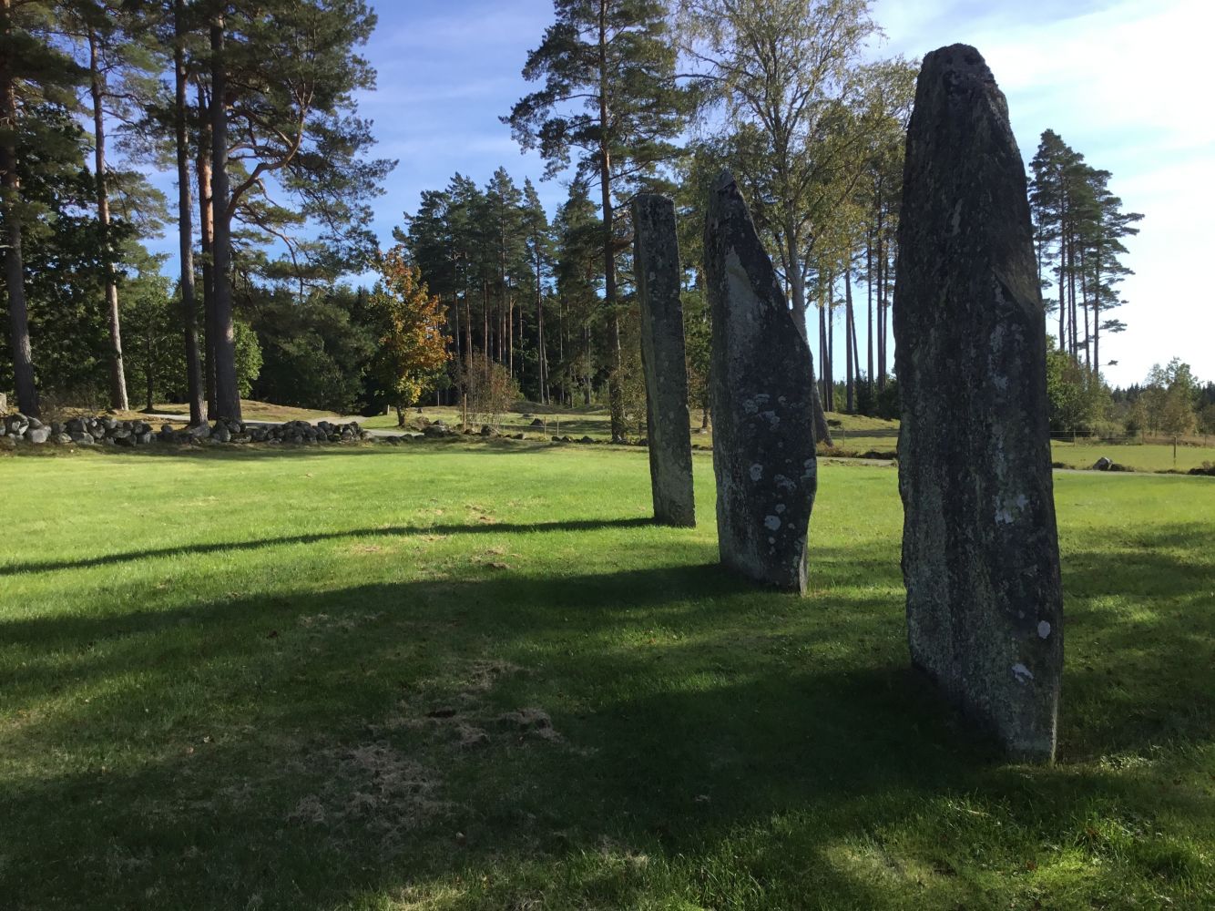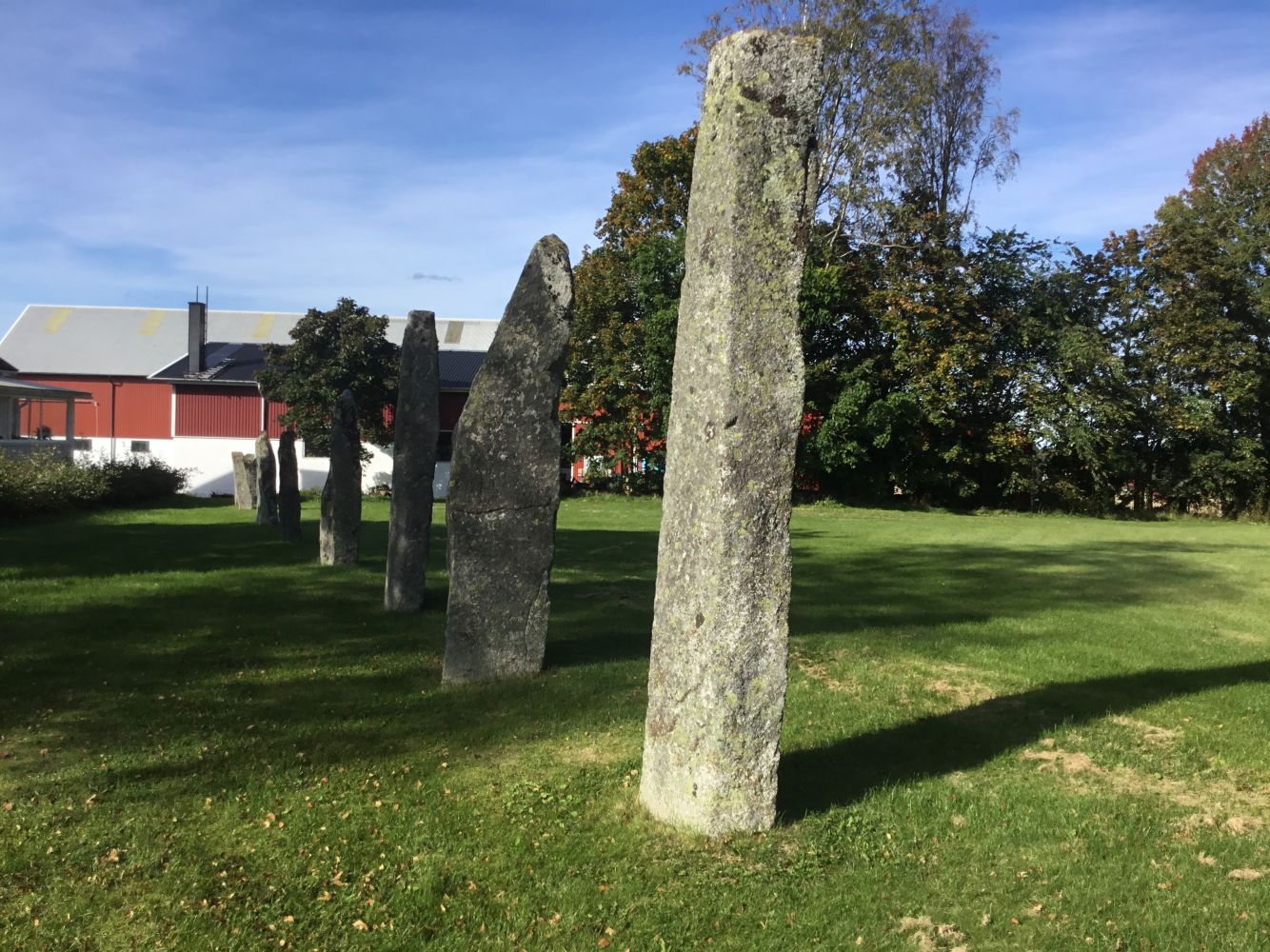 Förhistoriska kultplatser, astronomiska kalendrar eller gravmonument? Vid det storslagna järnåldersgravfältet Stenehed sydväst om samhället Hällevadsholm finns omkring fyrtio fornlämningar; högar, stensättningar, resta stenar, en domarring och en skeppssättning. På Stenehed ligger också en av våra märkligaste fornlämningar - nio bautastenar resta på en lång rad. Stenarna som ursprungligen varit elva eller tolv till antalet, ökar relativt jämt i höjd från knappt en och en halv meter i norr till dryga tre meter i söder. Det originella med bautastenarnsa på Stenehed är hur de har placerats. De står i en lång, något krökt rad där stenarna blir högre och högre i riktning från norr mot söder.